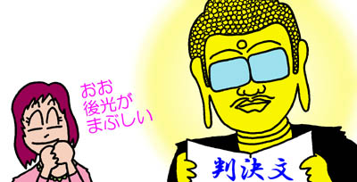 なんと過失は100%相手にあると認めてくれたのです。また、物損事故ではめずらしく、慰謝料も半分認めてくれました。慰謝料を減額された以外、裁判官はわたしの主張を全面的に受け入れてくれたのです。今までこわそうに見えた裁判官の顔が、仏様のようにやさしい顔に見えてきました。後光までさしているようです。張りつめていた緊張感がファ〜と抜けていきました。